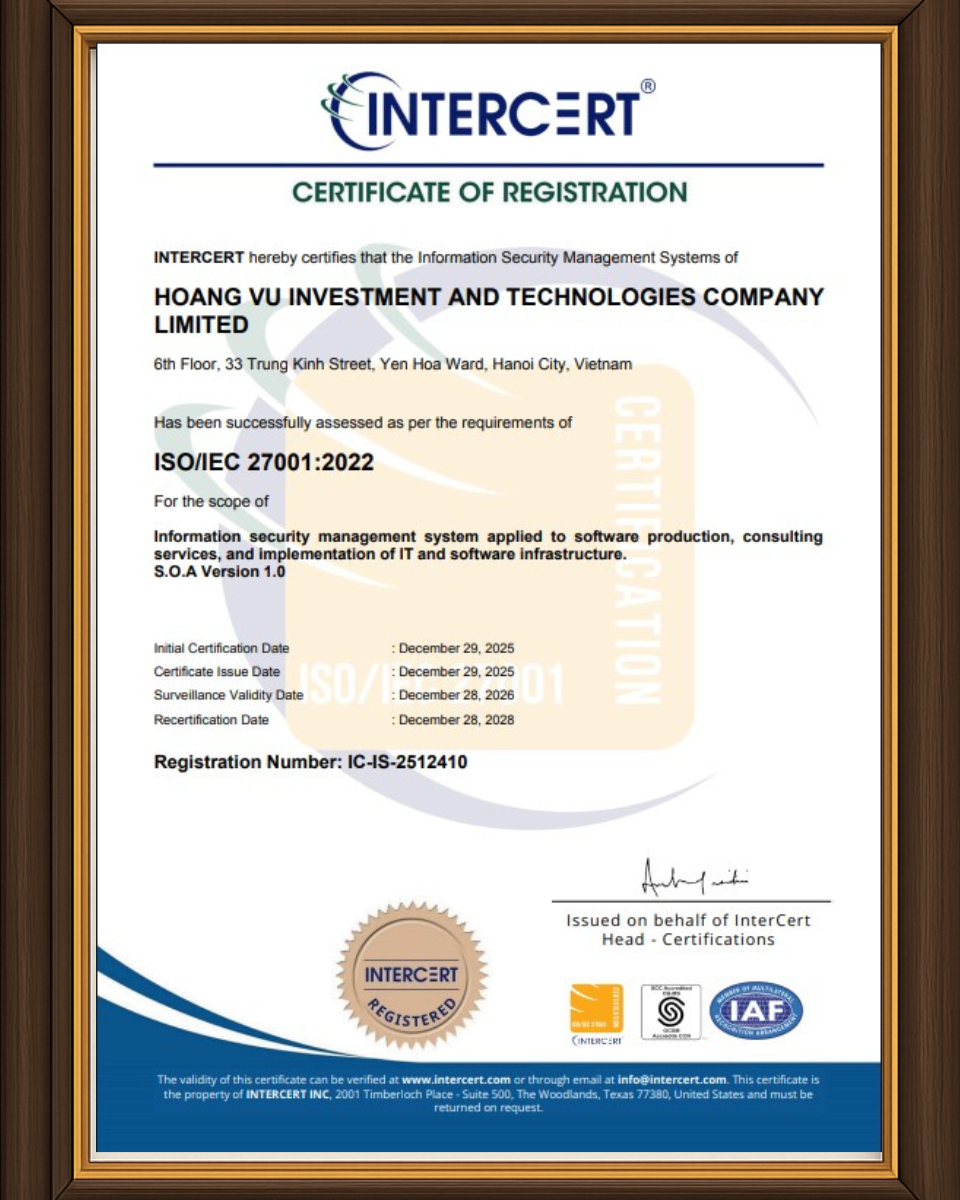 Hoàng Vũ đạt chuẩn bảo mật quốc tế ISO 27001:2022: Xây dựng lá chắn an toàn thông tin cho doanh nghiệp