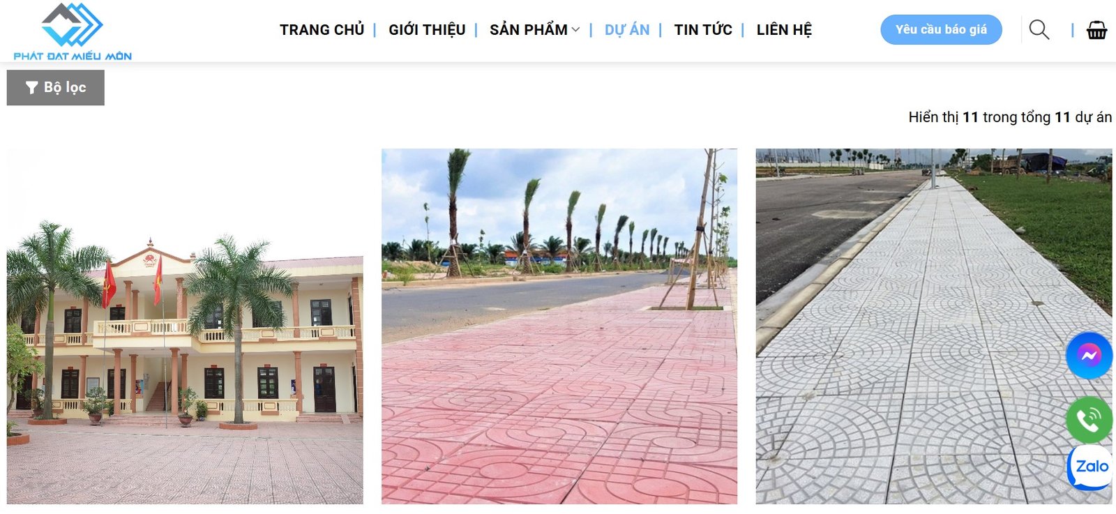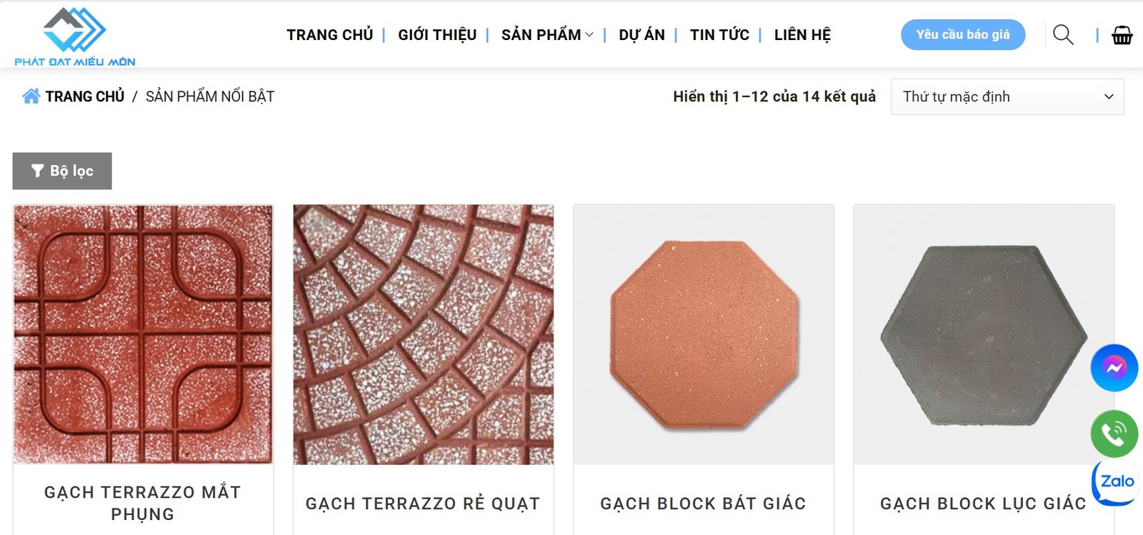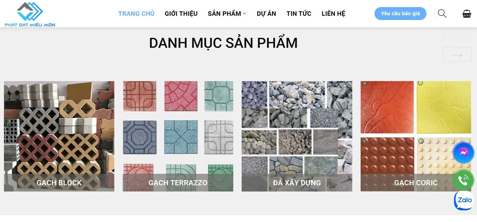 Bố cục trang được tối ưu rõ ràng, tập trung vào tính trực quan của sản phẩm, giúp khách hàng dễ dàng nhận biết các dòng gạch Block, gạch Terrazzo, gạch Coric, đá xây dựng…