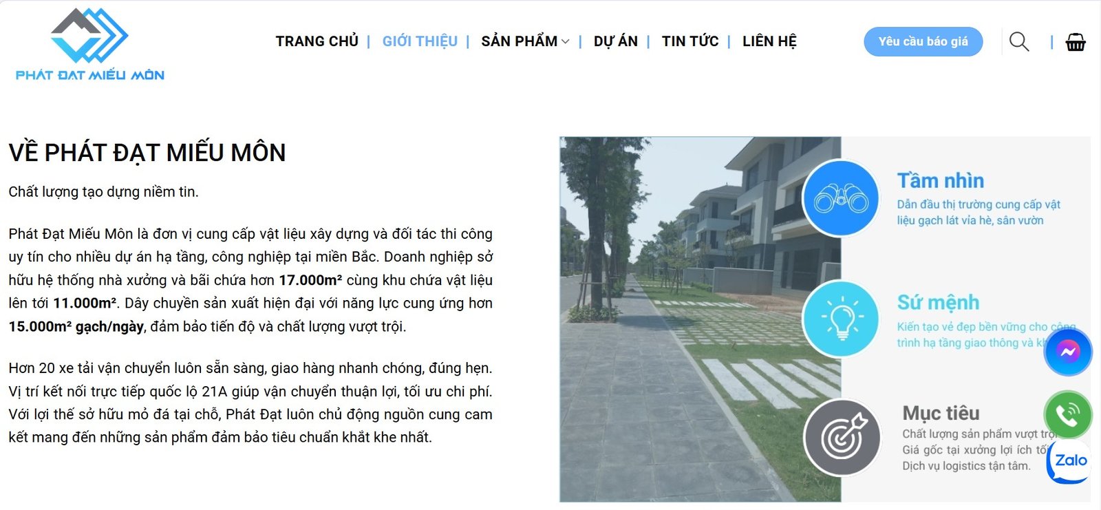 Tuy nhiên, ở thời điểm hợp tác với HVG Media, Phát Đạt Miếu Môn mong muốn chuyển mình mạnh mẽ hơn trên nền tảng số. Mục tiêu không chỉ là xây dựng một website giới thiệu sản phẩm, mà còn là nâng tầm hình ảnh thương hiệu, tăng độ tin cậy với nhà thầu và đối tác, đồng thời tối ưu trải nghiệm tra cứu sản phẩm, yêu cầu báo giá trực tuyến cho khách hàng B2B.