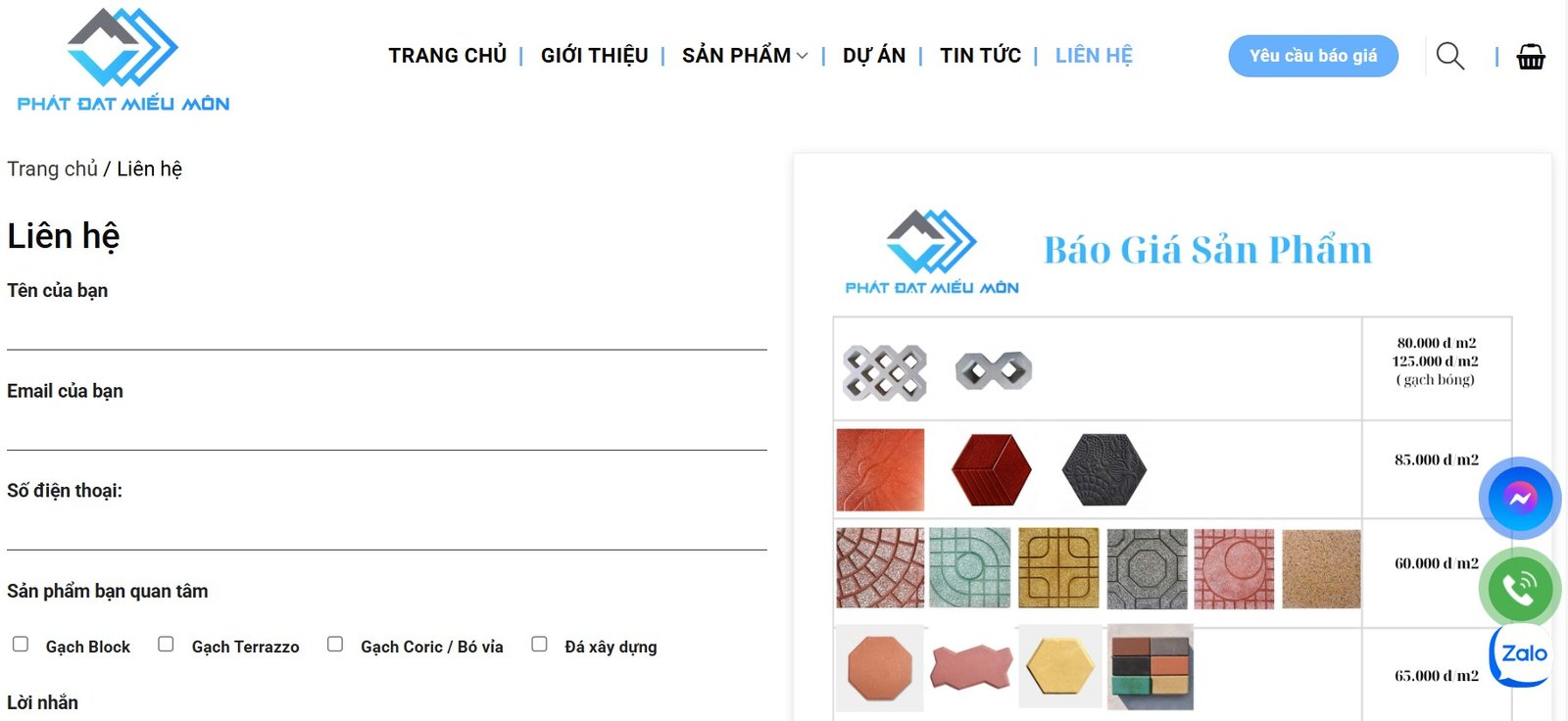 Chức năng “Yêu cầu báo giá”, “Liên hệ nhanh qua Zalo, Messenger”, giúp khách hàng doanh nghiệp dễ dàng tiếp cận và trao đổi thông tin trực tiếp với đội ngũ tư vấn Phát Đạt.
